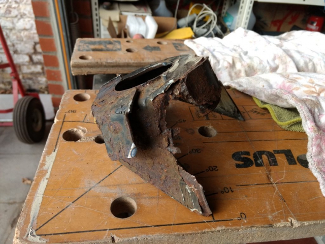 Nu we aan het grote werk bezig waren, werd er wat nauwkeuriger gekeken. En toen bleek dat in de paar jaar dat de auto stil heeft gestaan, er een enorm gat achter de veerophanging was gekomen!